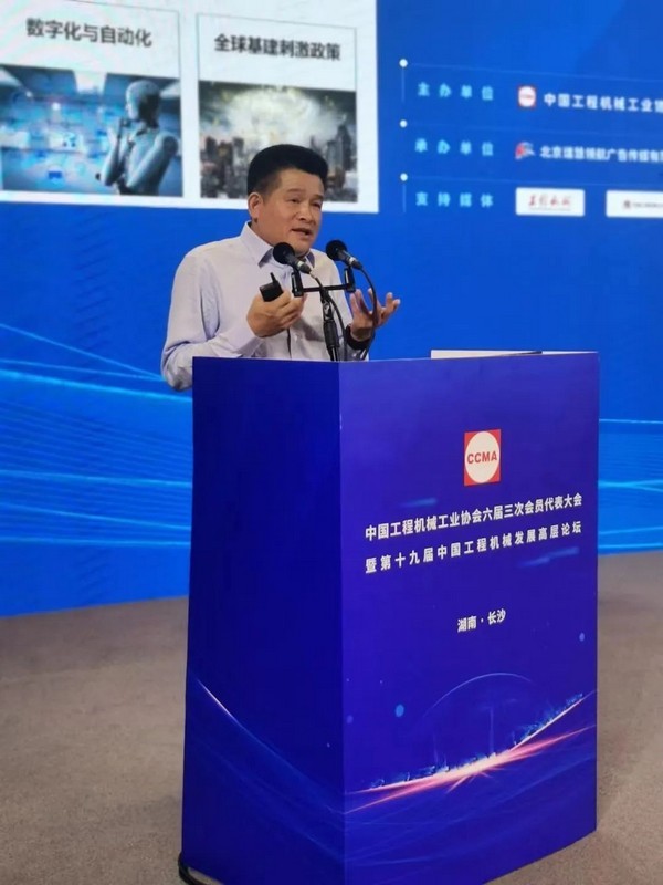 于孟生董事長在大會上作了題為《價值引領,高質發展,共創全球化新機遇》的主旨演講,結合中國工程機械全球化進程,分析了中國工程機械企業從區域性到全球化發展的機遇挑戰,提出了中國工程機械如何對品牌、供應鏈、人才等應變全球化挑戰的思考。